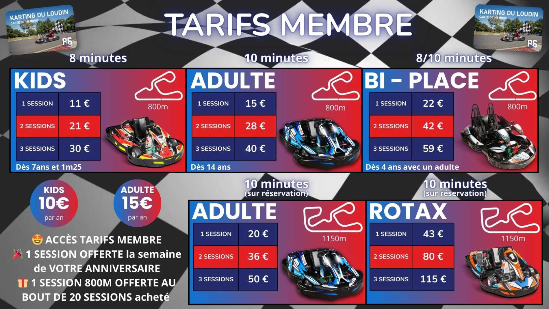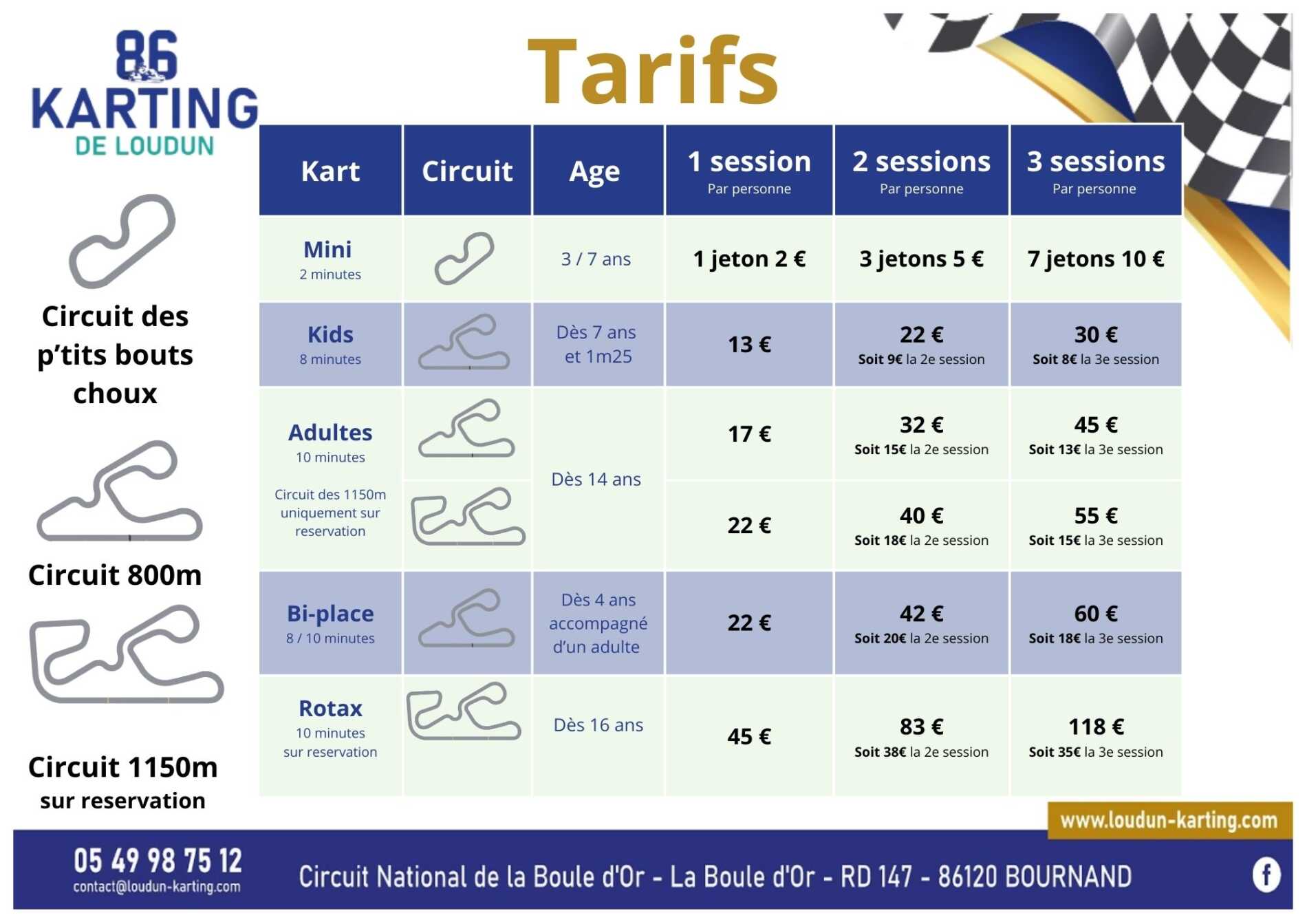 Les sessions sur le Cicuit de 1150m et les sessions rotax sont seulement sur reservation